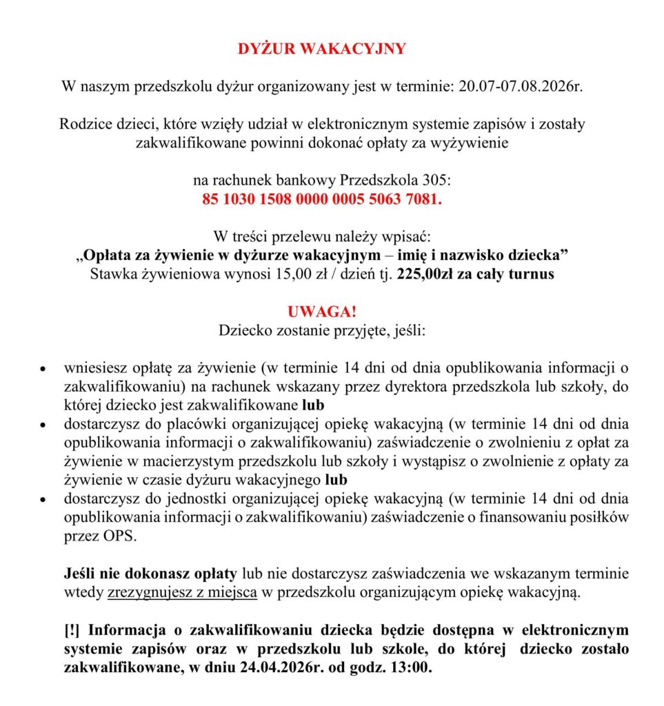 rekrutacja na dyżur wakacyjny 2026